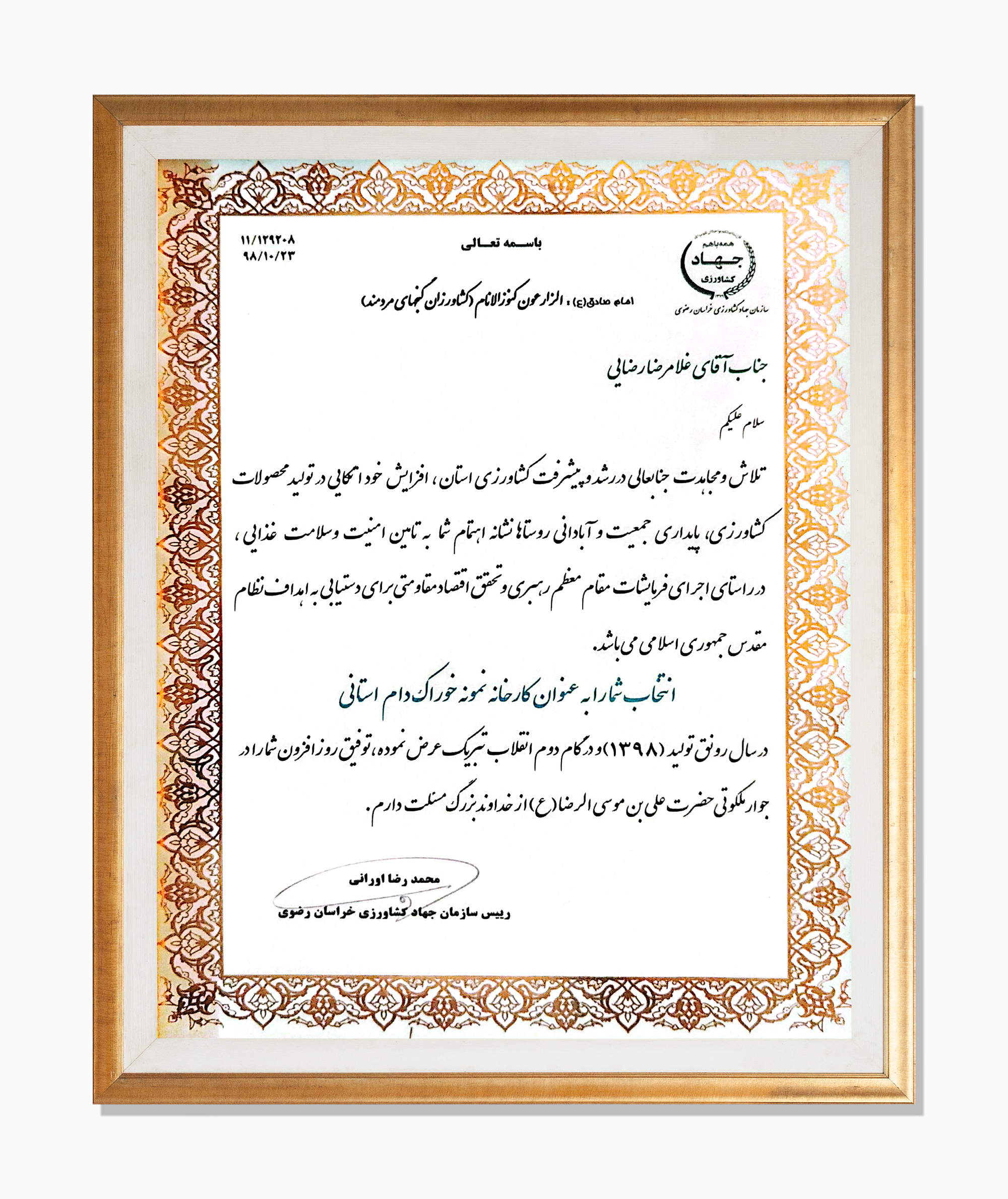 تقدیر از مشارکت در جشنواره شکرانه گندم (1401)